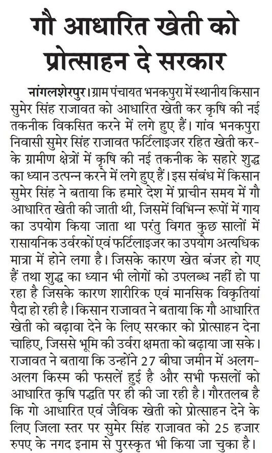 Sumer's approach to farming is simple yet effective – he relies on raw materials like Dhatura, Indrayan, and other homegrown materials to produce inputs that replace fertilizers and pesticides. This approach has helped revitalize soil while protecting crops from pests. His practices have been yielding remarkable results for the last seven years, with the soil health and biodiversity in the region improving significantly.