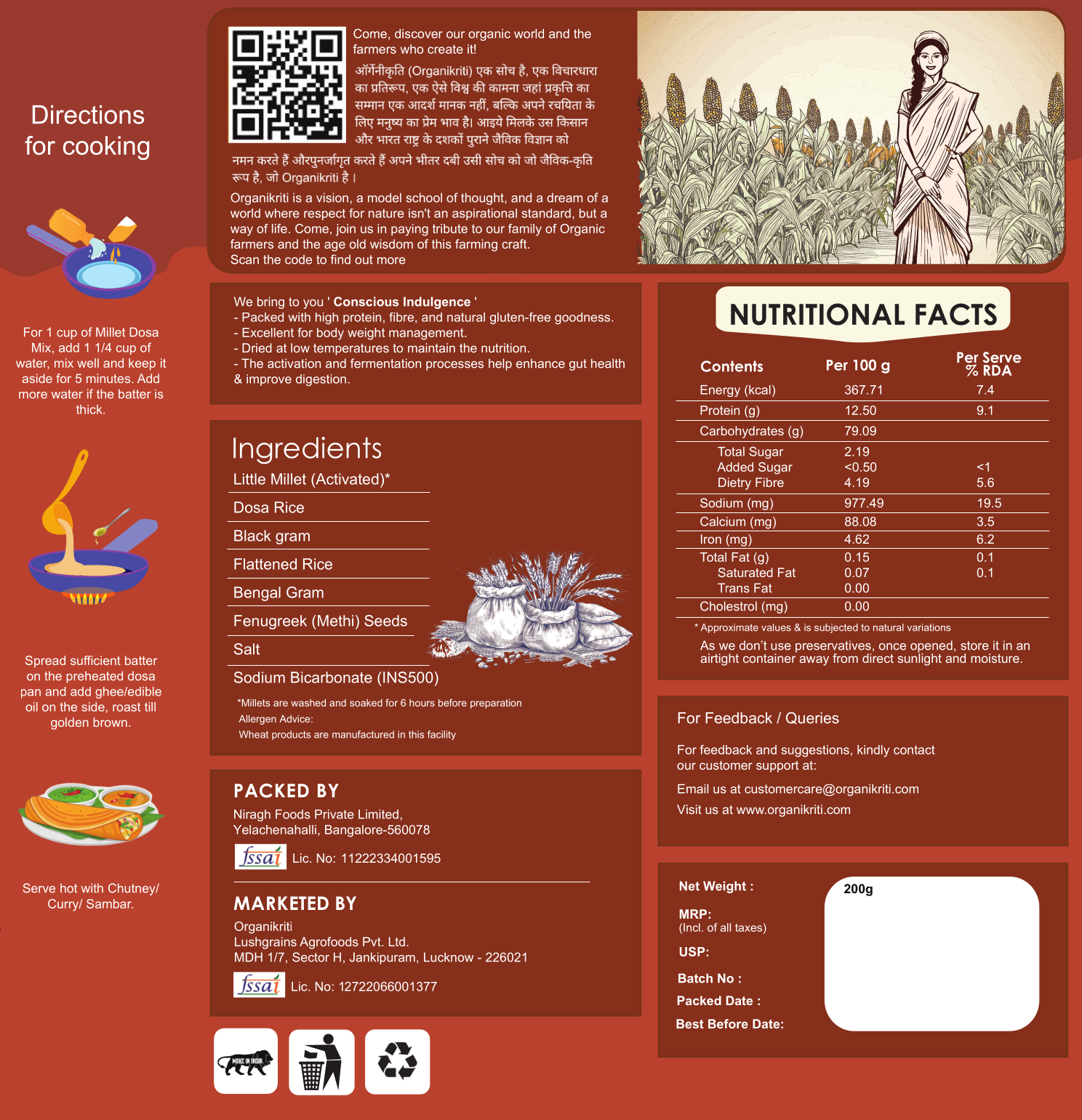 Make crispy, delicious dosas in no time with Organikriti’s Gluten - Free Sprouted Millet Dosa Mix. Made from organic millets, this mix is a nutritious alternative to traditional dosa batter, bringing the goodness of millets to your breakfast table. Free from artificial additives, it’s a great way to enjoy a traditional Indian dish while supporting a healthy lifestyle.