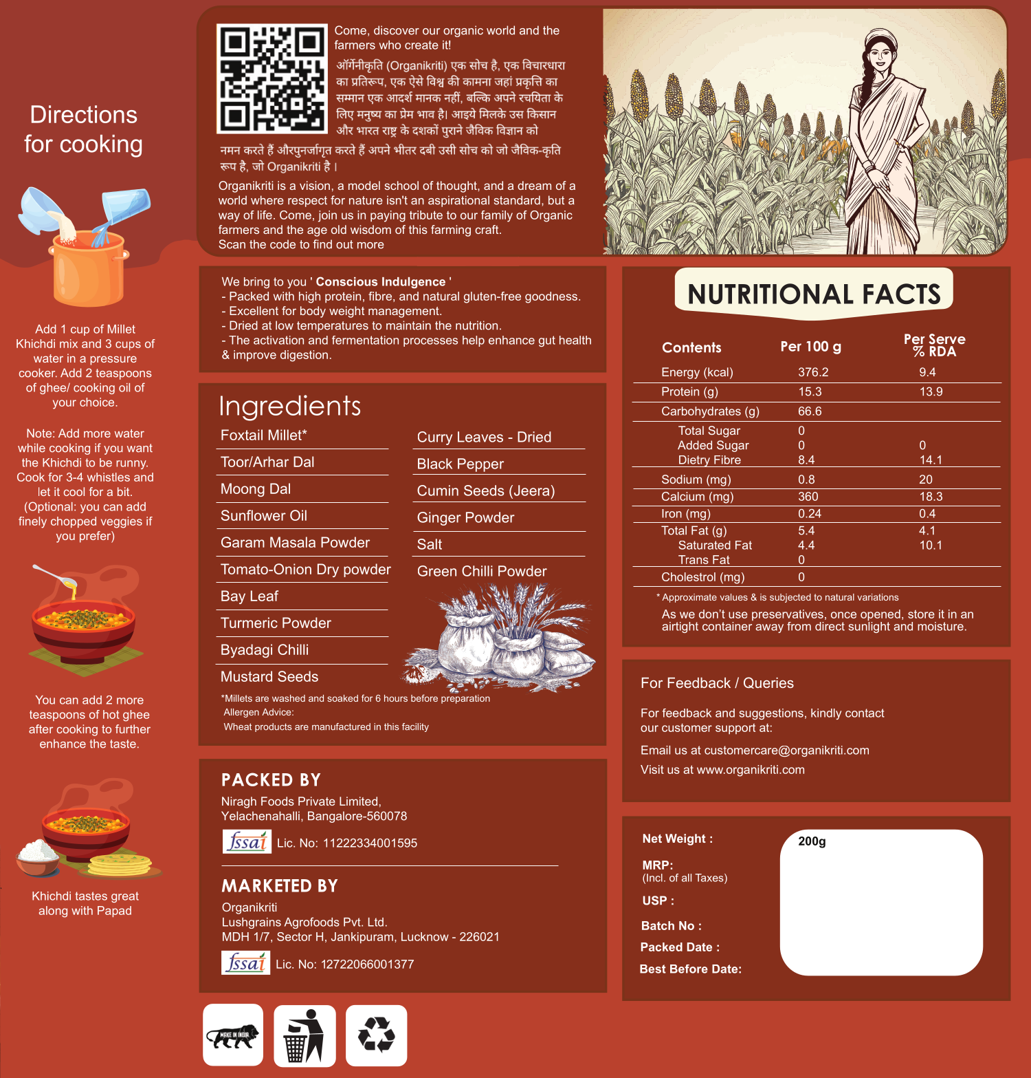 For a hearty meal that's light on the stomach – Organikriti Gluten- Free Millet Khichdi.