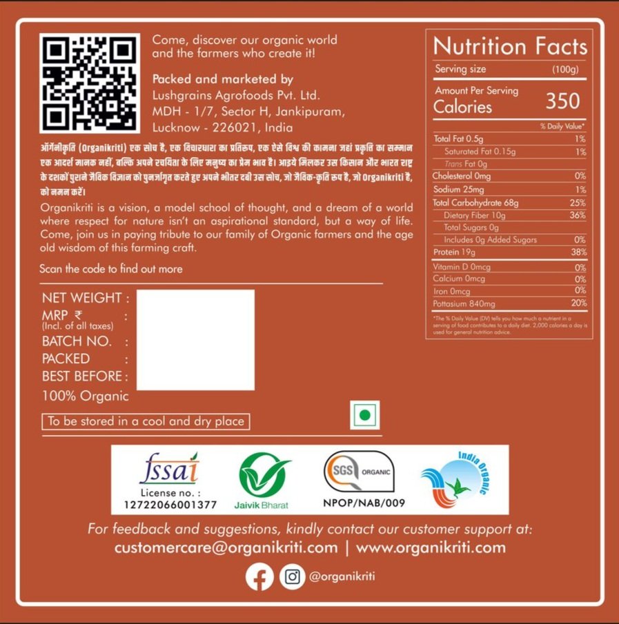 100 % Organic and unadulterated. Grown without synthetic pesticides and GMOs.