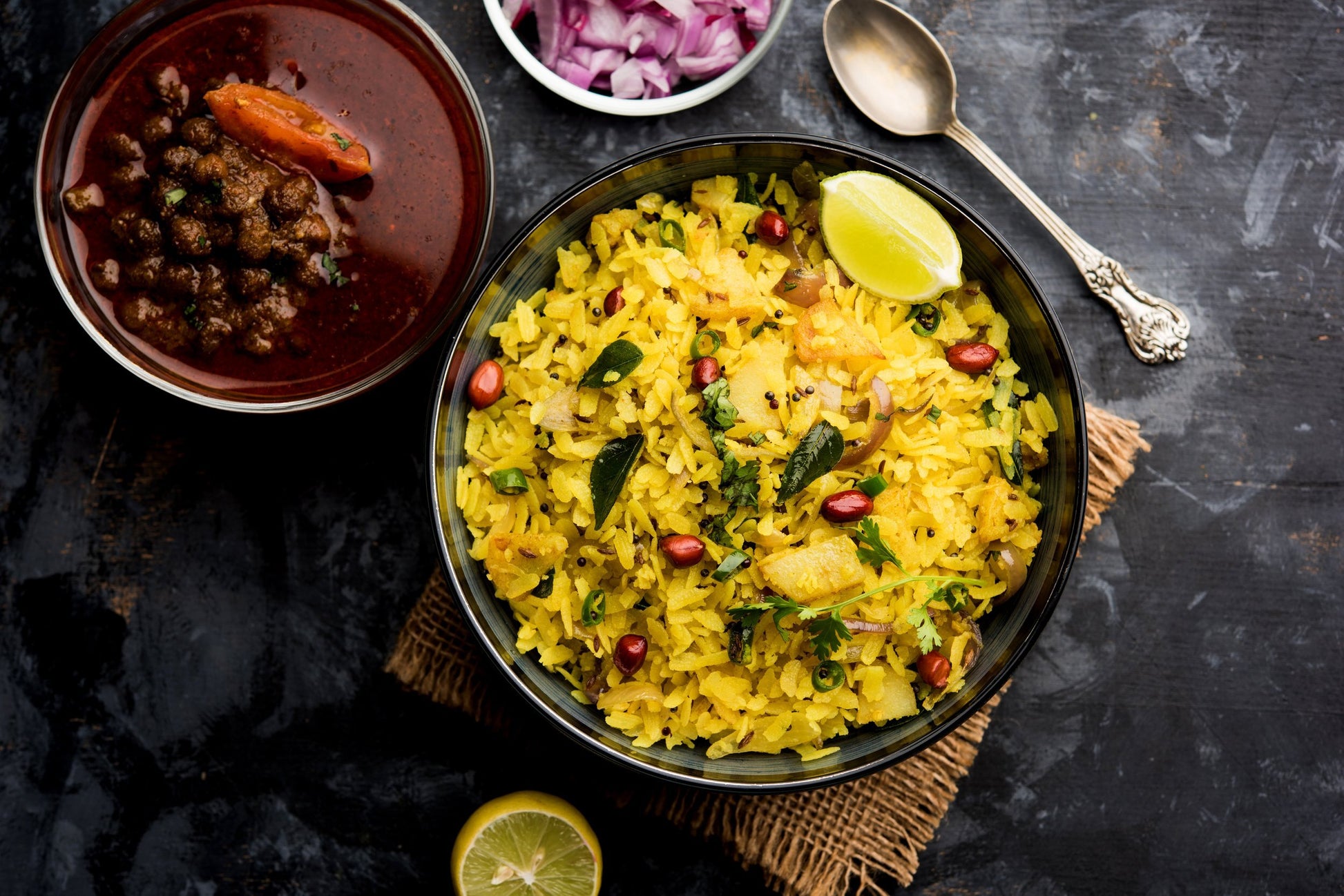 Poha provides energy, iron, and carbohydrates. High in dietary fibre, it may aid in weight loss and blood sugar control.
